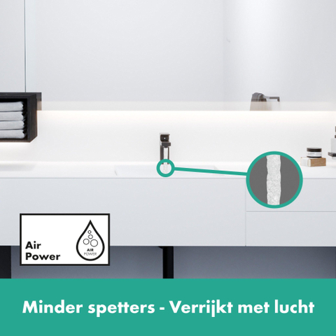 De waterhoeveelheid en temperatuur kunnen ingesteld worden met de gebruiksvriendelijke en ergonomisch gevormde greep die het hoge kwaliteit hansgrohe keramisch mengsysteem bedient en niet losraakt, ook niet bij veelvuldig gebruik. Nog een pluspunt: Deze kraan bespaart geld en beschermt het milieu omdatde doorstroomhoeveelheid automatisch begrensd is tot 4,3 l/min, zelfs als de waterdruk hoog is (EcoSmart). Het water wordt verrijkt met lucht voor een volle waterstraal en minder gespetter (AirPower).