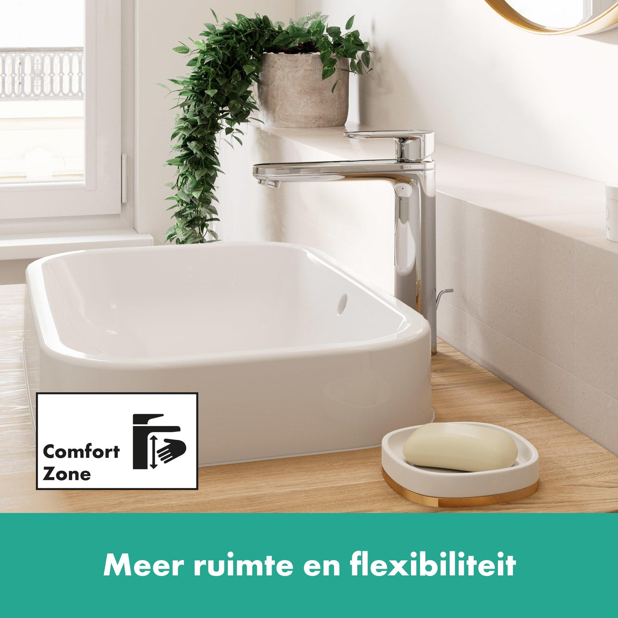 Perfect voor waskommen en krappe budgetten: lange wastafelmengkraan van hansgrohe met pop-up afvoergarnituur
