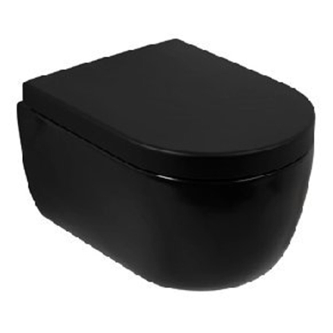 Plieger Kansas wandclosetpack met wandcloset diepspoel spoelrandloos 36x54.5cm inclusief softclose closetzitting en lift-off mat zwart