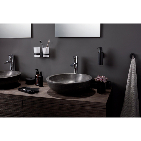 De Haceka Kosmos Zeepdispenser straalt stijl en klasse uit met zijn matte zwarte afwerking. Het minimalistische ontwerp zorgt voor een eigentijdse uitstraling die perfect past bij moderne badkamers. De strakke lijnen en het slanke profiel van de dispenser voegen een vleugje verfijning toe aan de ruimte, waardoor het een echte blikvanger wordt.