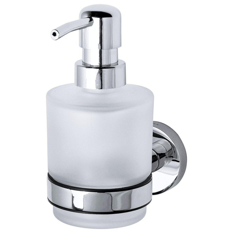 Hang deze mooie, matglazen zeepdispenser in uw badkamer of toilet en u heeft altijd - snel en hygiënisch - zeep bij de hand. Makkelijk in gebruik en in een handomdraai bij te vullen. De rubberen ring houdt de dispenser stevig op zijn plaats. Bovendien is dit model - doordat het van glas is - geschikt voor alle soorten vloeibare zeep.