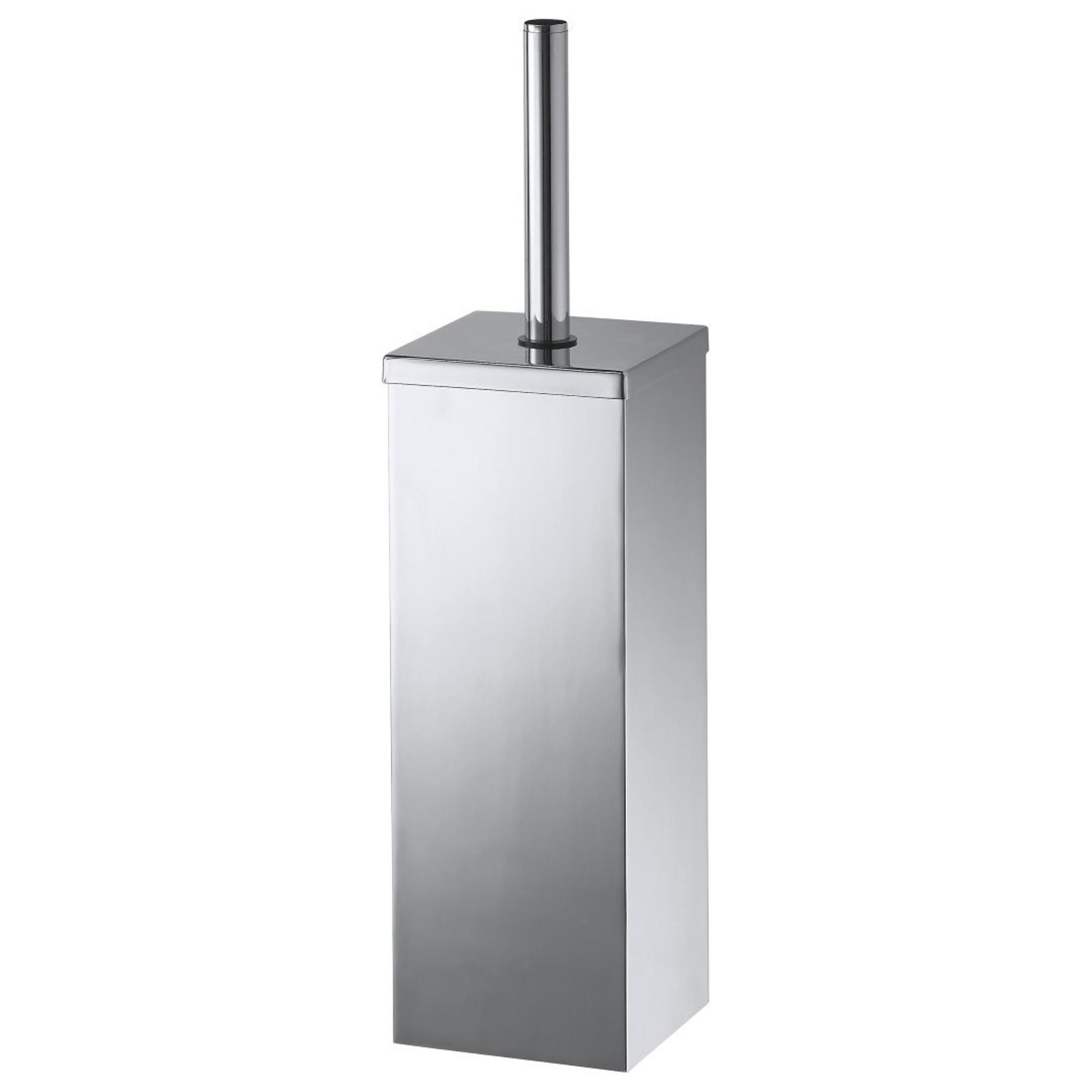 Vrijstaande, vierkante toiletborstelset in de kenmerkende Mezzo-stijl. Geeft uw toiletruimte extra stijl. De set is aan de wand te monteren, maar u kunt hem ook op de grond zetten. Om het schoonmaken makkelijk te maken, heeft de set een binnenpot.