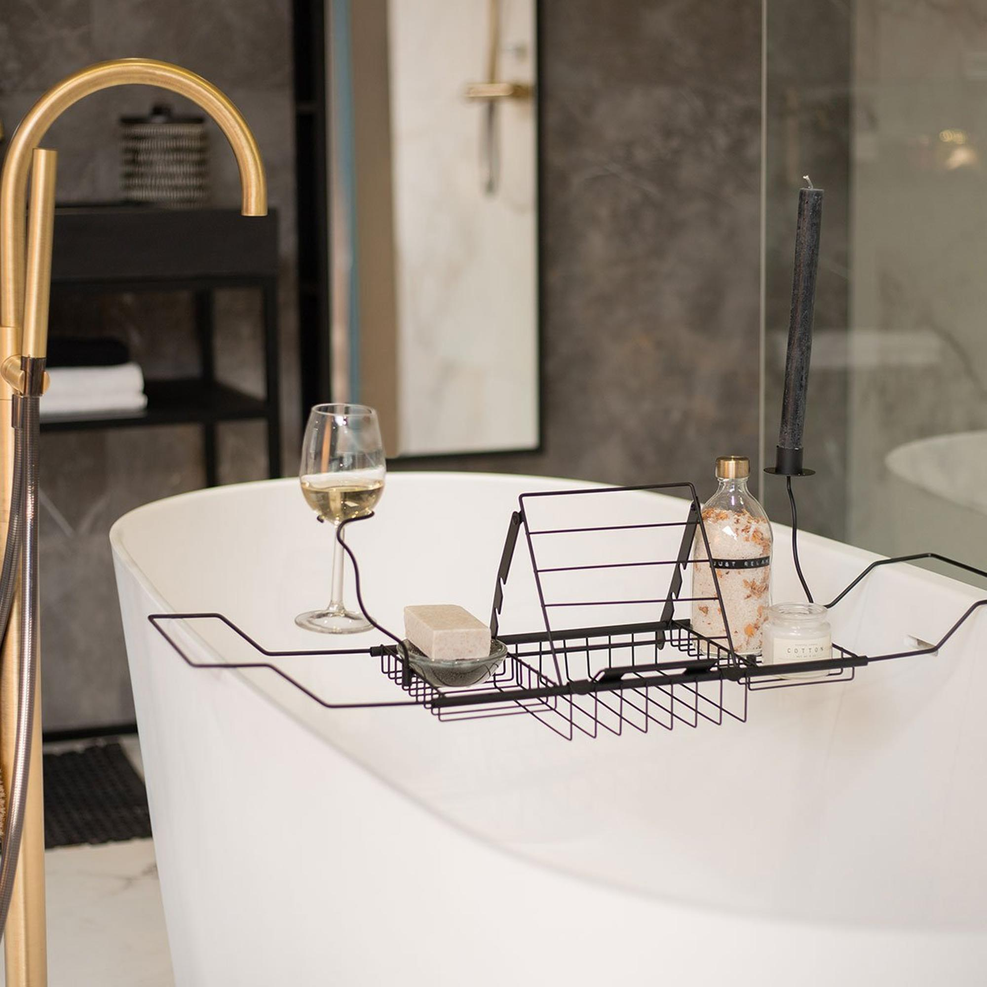 Met het uitschuifbare ontwerp van dit badrek kun je eenvoudig de gewenste breedte aanpassen, waardoor het perfect past op verschillende badafmetingen. De stevige constructie zorgt ervoor dat je veilig je boeken, tablet of een glas wijn kunt plaatsen terwijl je ontspant in bad. De zwarte afwerking geeft een moderne uitstraling en past goed bij diverse badkamerstijlen, van klassiek tot eigentijds.