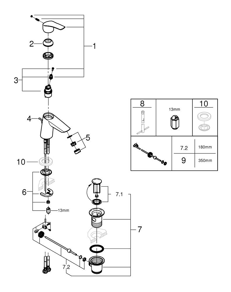 GROHE Eurosmart waterbesparende wastafelmengkraan 185x74x149mm met waste Chroom