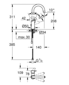 GROHE Eurosmart waterbesparende wastafelkraan l-size met ketting chroom