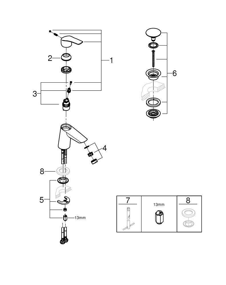 GROHE Eurosmart waterbesparende wastafelkraan s-size met pop-up waste chroom