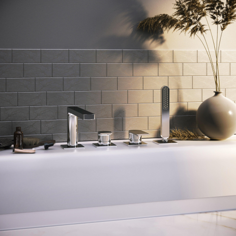 Strakke afwerkingVoor een strakke afwerking langs het bad kies je een badrandkraan. Deze kraan plaats je in de kraangaten van een bad, of in de tegelrand. Tegenwoordig is de badrandkraan populairder dan ooit. De grootste reden hiervoor is de strakkere afwerking die het heeft, want: er zijn geen slangen of leidingen in beeld.