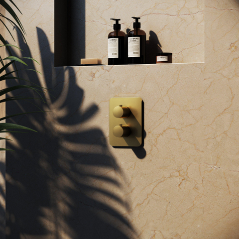 Hotbath Gal Afbouwdeel voor inbouwthermostaat met stop-omstel Geborsteld messing PVD
