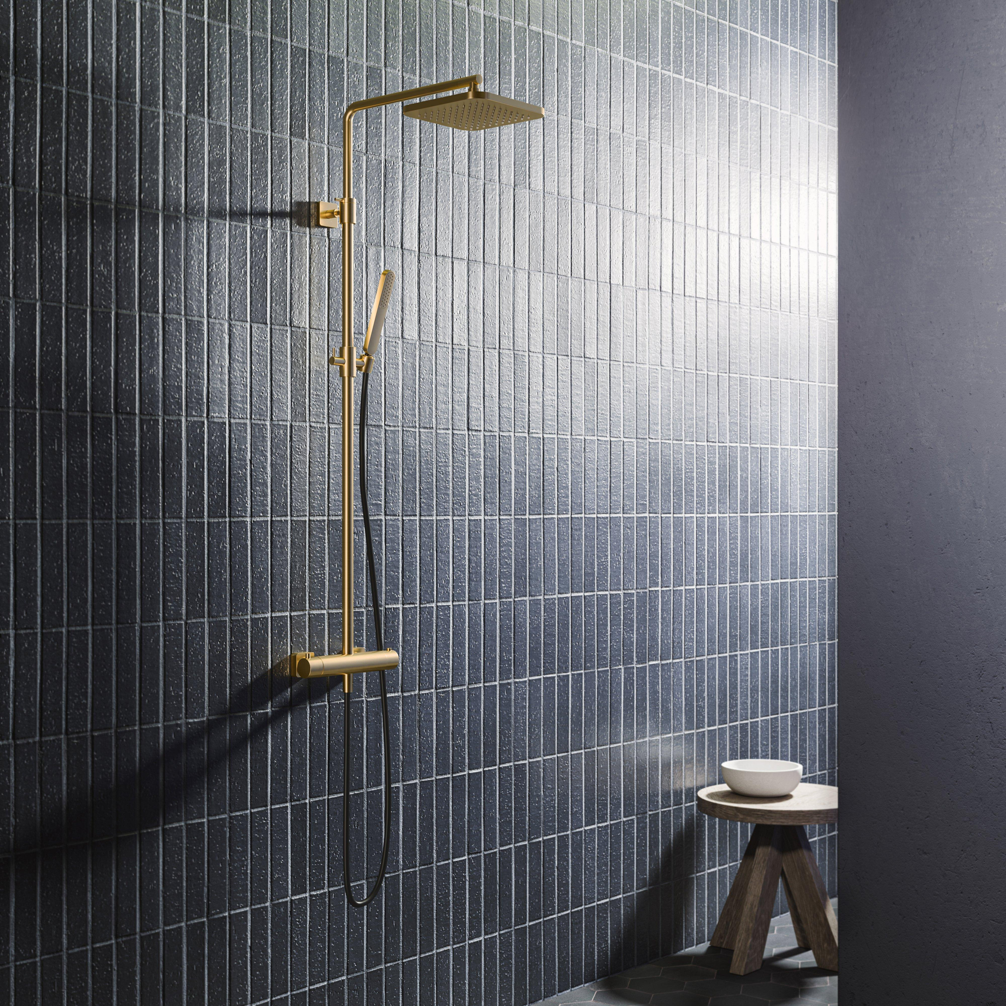 Hotbath Gal thermostatische regendoucheset met 22x22cm vierkante hoofddouche staafhanddouche messing geborsteld PVD