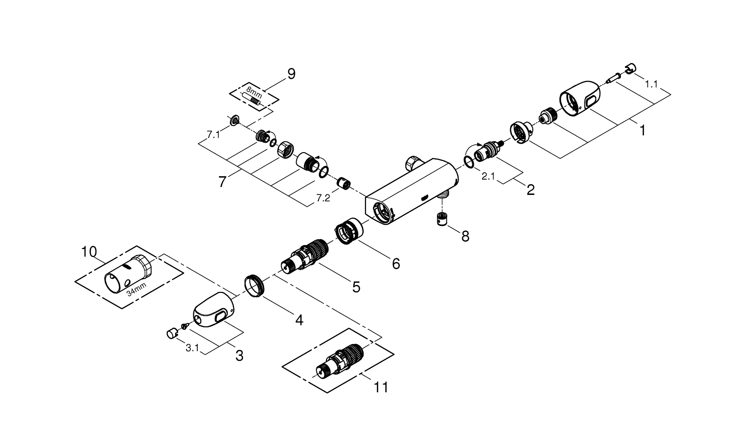 GROHE Grohtherm 1000 douchethermostaat hartafstand=12cm zonder koppelingen chroom