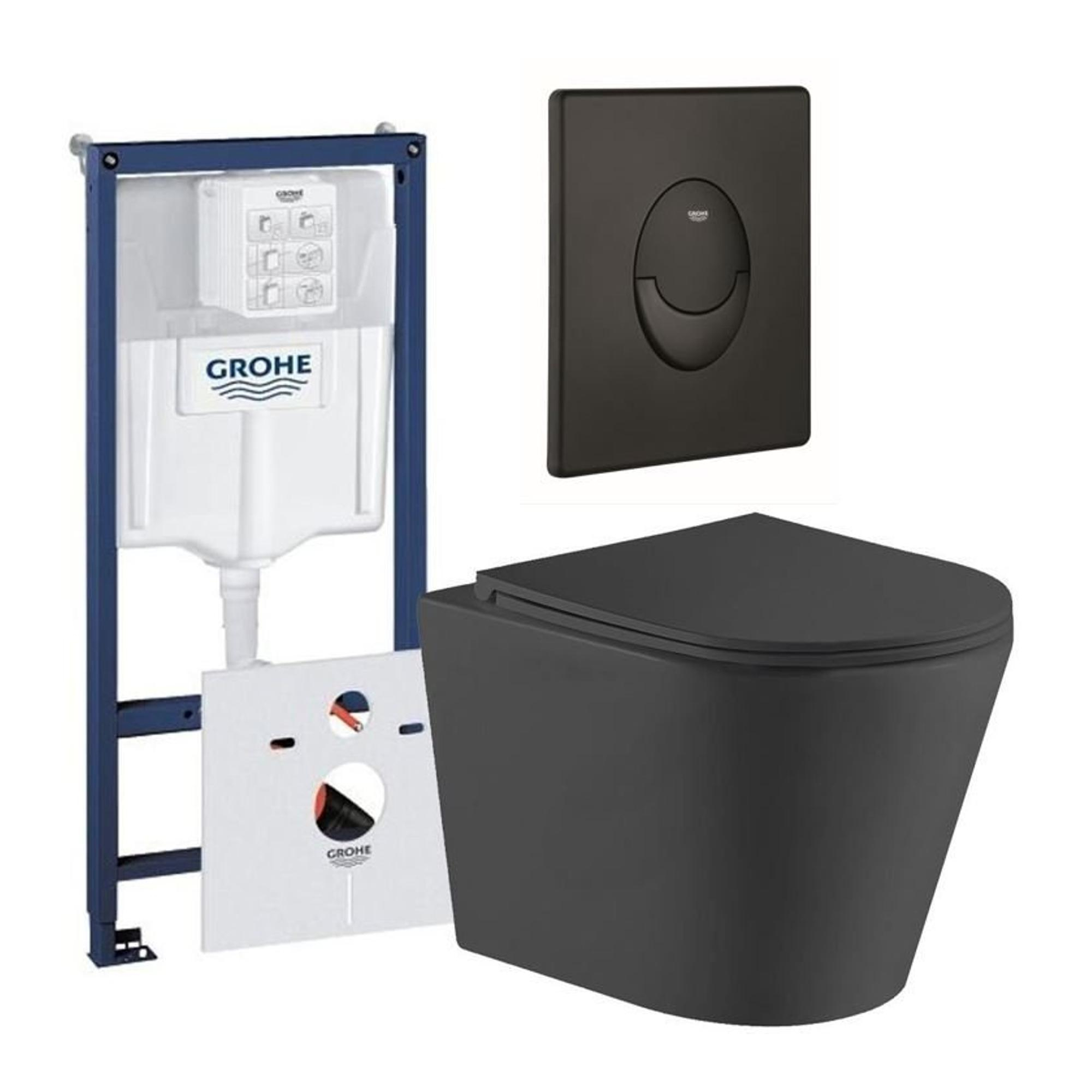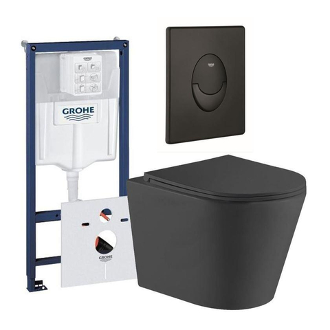 QeramiQ Dely Toiletset - Grohe inbouwreservoir - mat zwarte bedieningsplaat - ovaal toilet - zitting - mat zwart