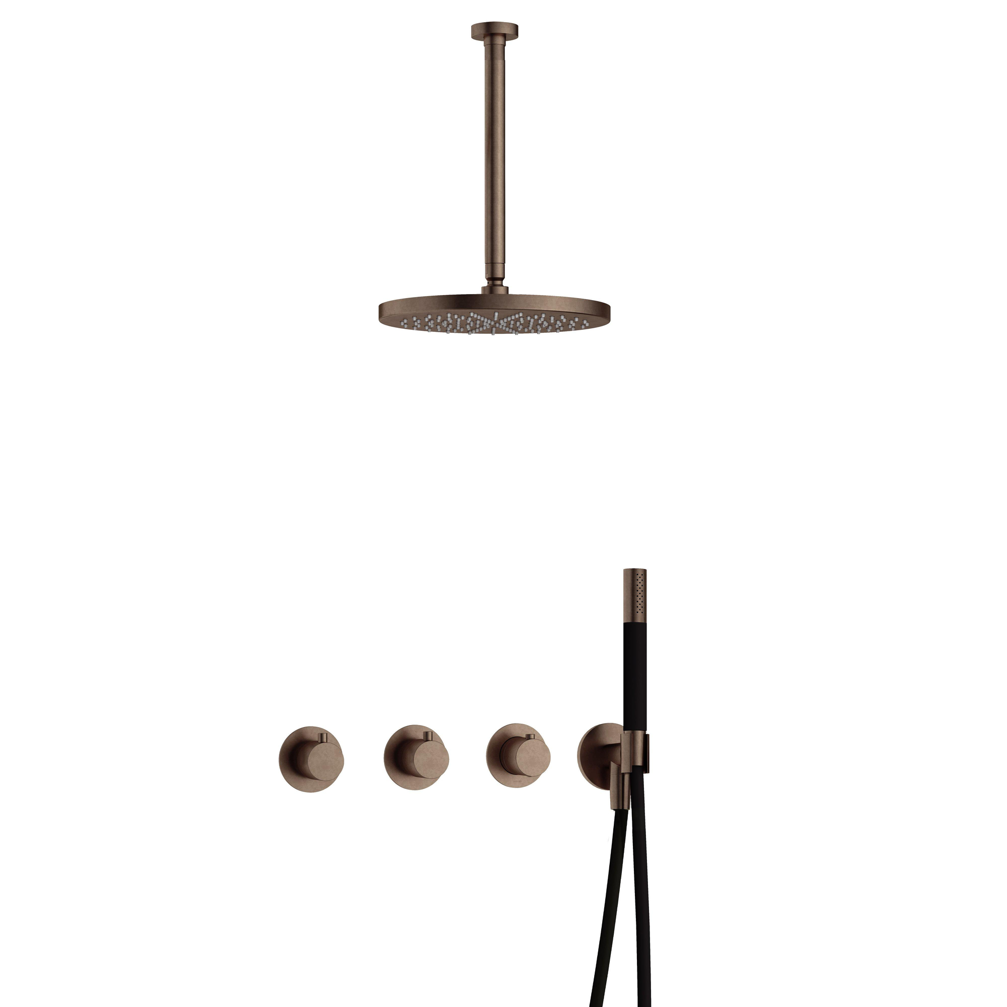 Hotbath Cobber IBS70 Regendoucheset inbouw - 30cm plafondarm - 30cm ronde hoofddouche - staafhanddouche - verouderd messing