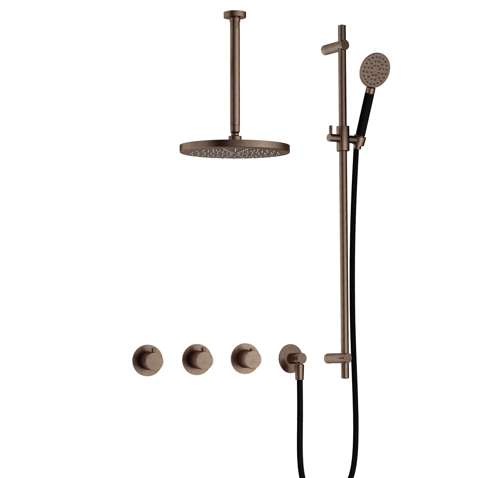 Hotbath Cobber IBS70 Regendoucheset inbouw - 30cm plafondarm - 30cm ronde hoofddouche - 3 standen handdouche - glijstang - verouderd messing