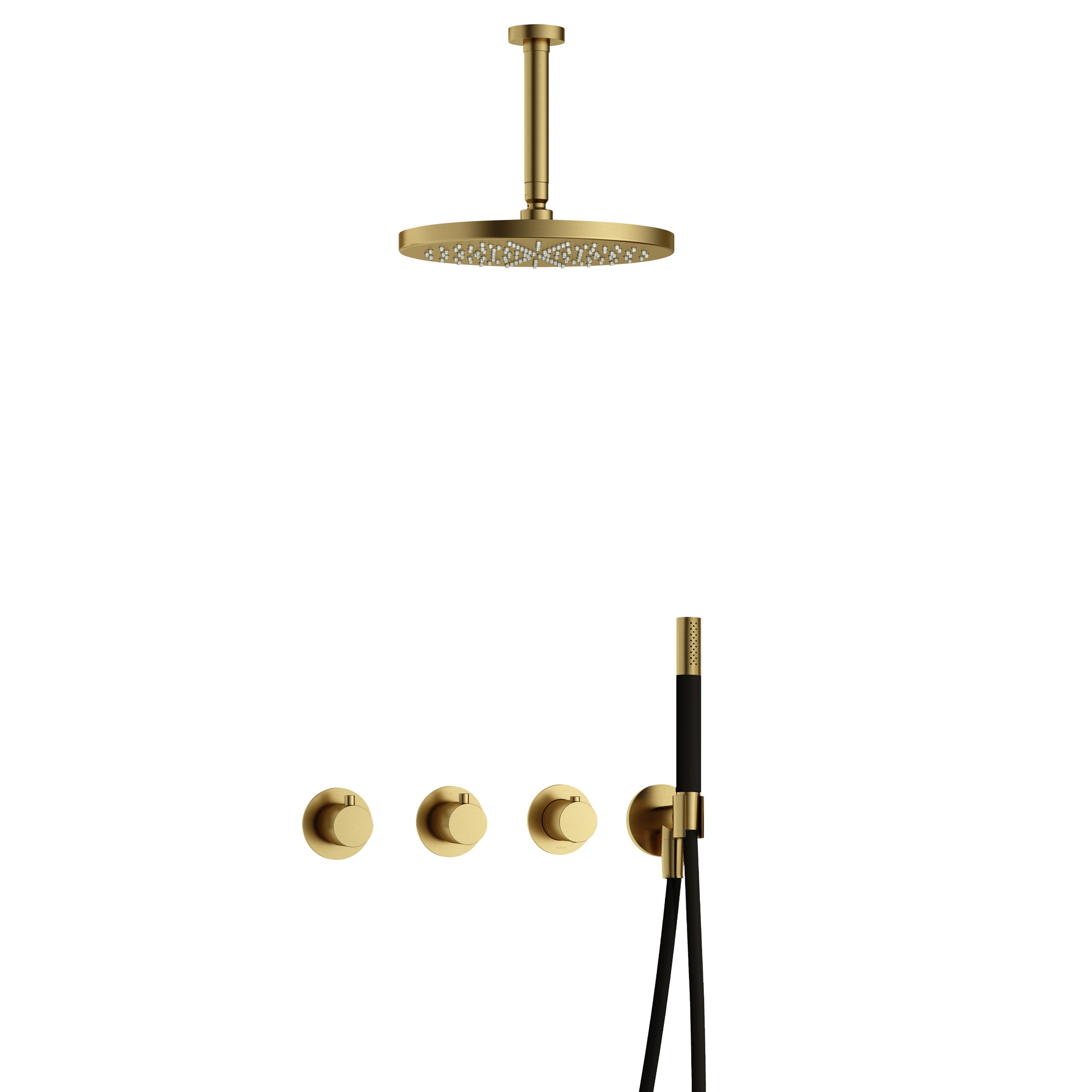 Hotbath Cobber IBS70 Regendoucheset inbouw - 15cm plafondarm - 30cm ronde hoofddouche - staafhanddouche - geborsteld messing PVD