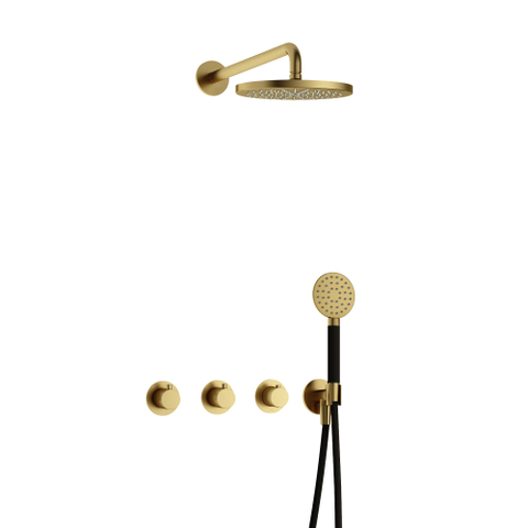 Hotbath Cobber IBS70 Regendoucheset inbouw - 38.5cm wandarm - 20cm ronde hoofddouche - 3 standen handdouche - geborsteld messing PVD
