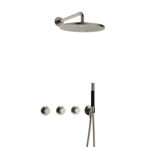Hotbath Cobber IBS70 Regendoucheset inbouw - 38.5cm wandarm - 30cm ronde hoofddouche - staafhanddouche - nikkel geborsteld