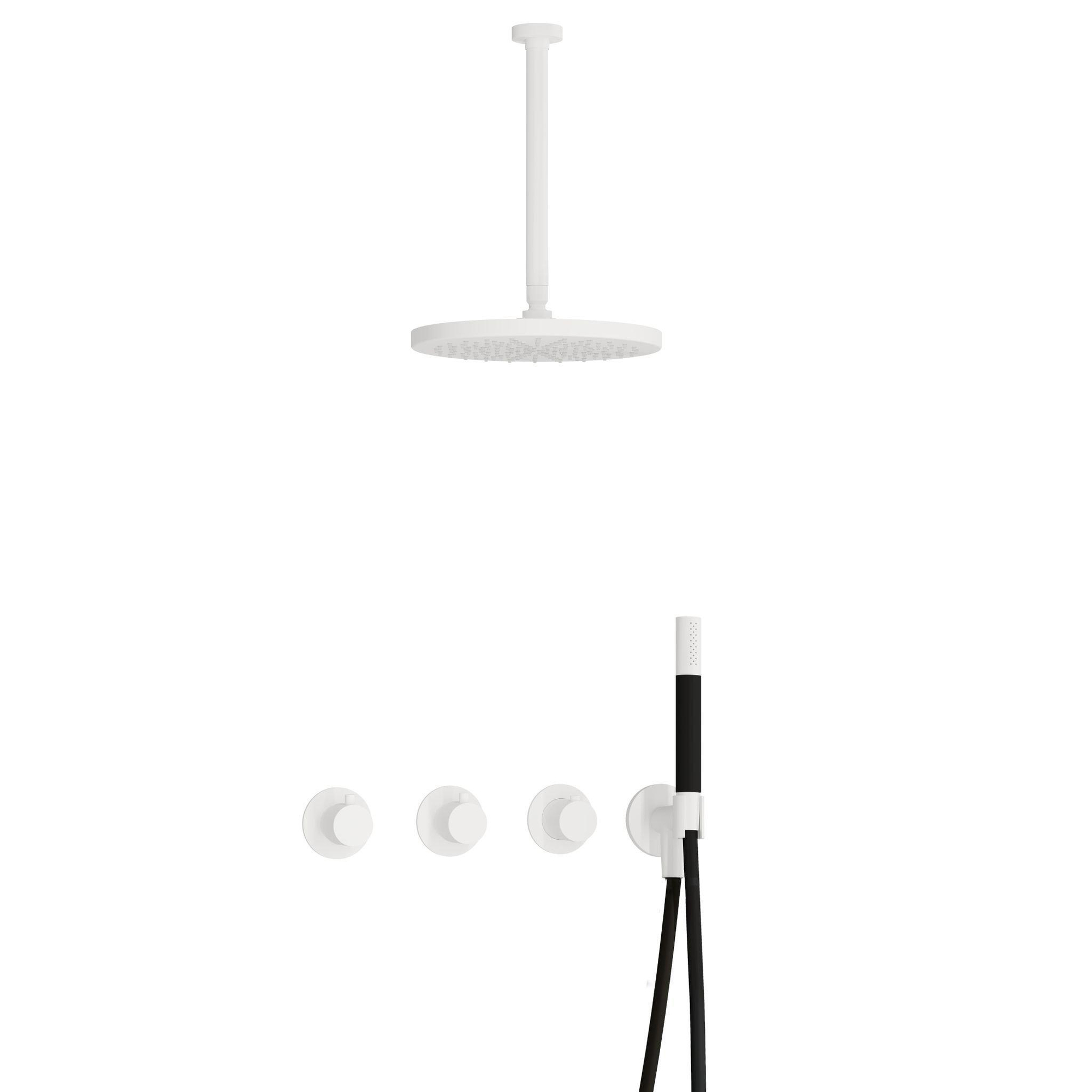 Hotbath Cobber IBS70 Regendoucheset inbouw - 30cm plafondarm - 30cm ronde hoofddouche - staafhanddouche - wit mat
