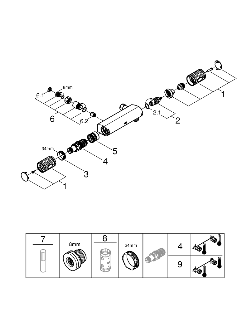 GROHE SafeStop Plus optionele temperatuurbegrenzer bij 43°C inbegrepen