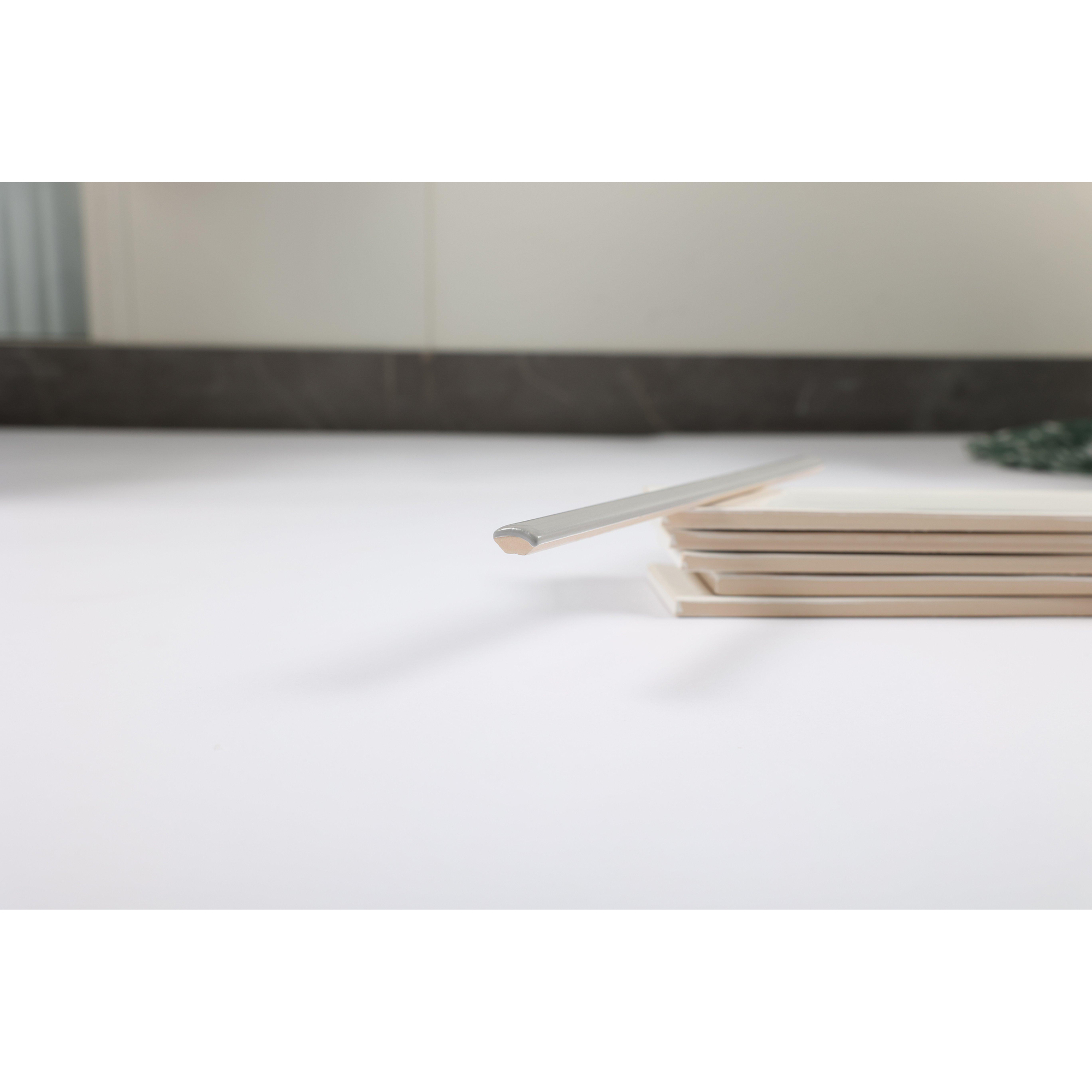 De Cifre Ceramica Quarter Round wandtegel onderscheidt zich door zijn prachtige esthetiek. De grijze matte afwerking geeft een gevoel van rust en verfijning aan elke ruimte waarin hij wordt geplaatst. De subtiele rechthoekige vorm en de precieze afmetingen van 1.5x30cm zorgen voor een strakke en moderne uitstraling. Deze tegel is ideaal voor het creëren van een elegante en tijdloze sfeer in je interieur.