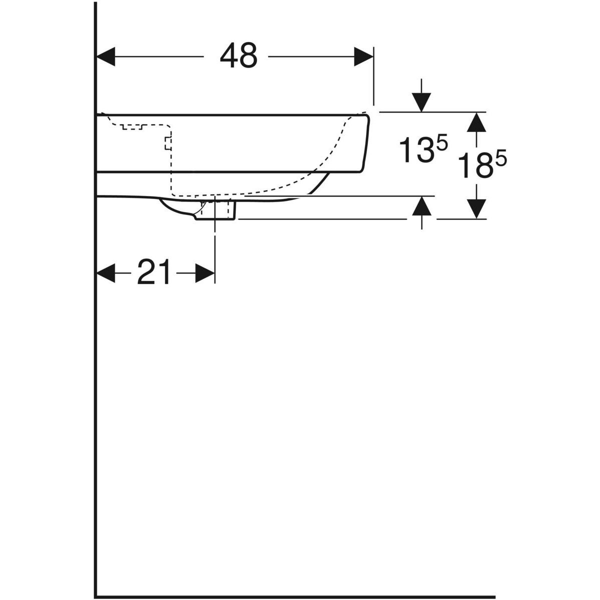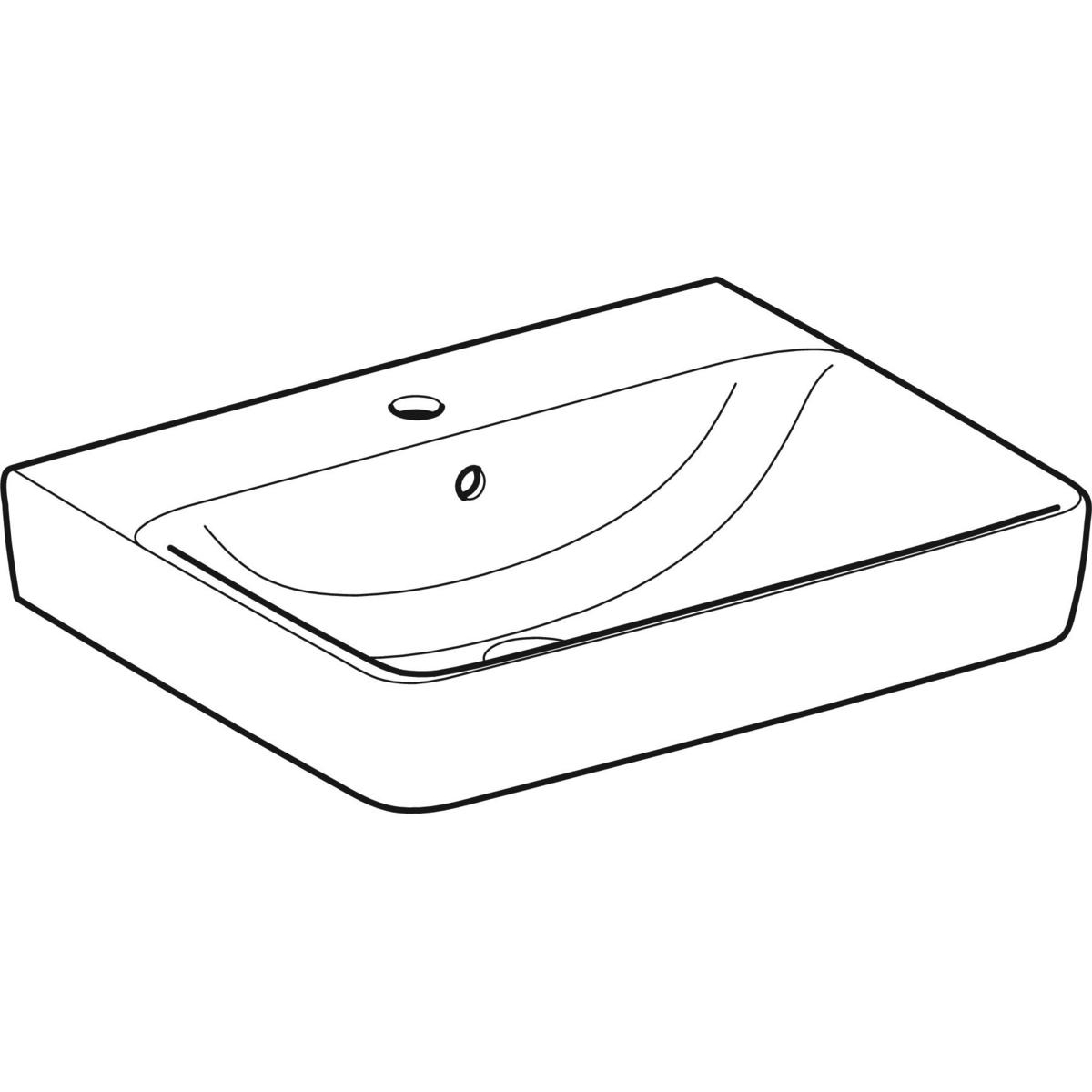 Geberit Renova plan wastafel - 60x48cm - 1 kraangat - met overloop - wit