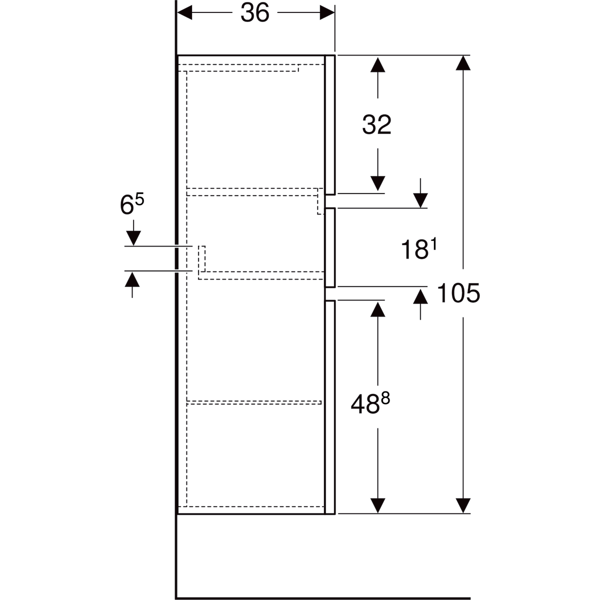 Geberit Renova plan halfhoge kast 2 deur 1 la 105cm mat lava