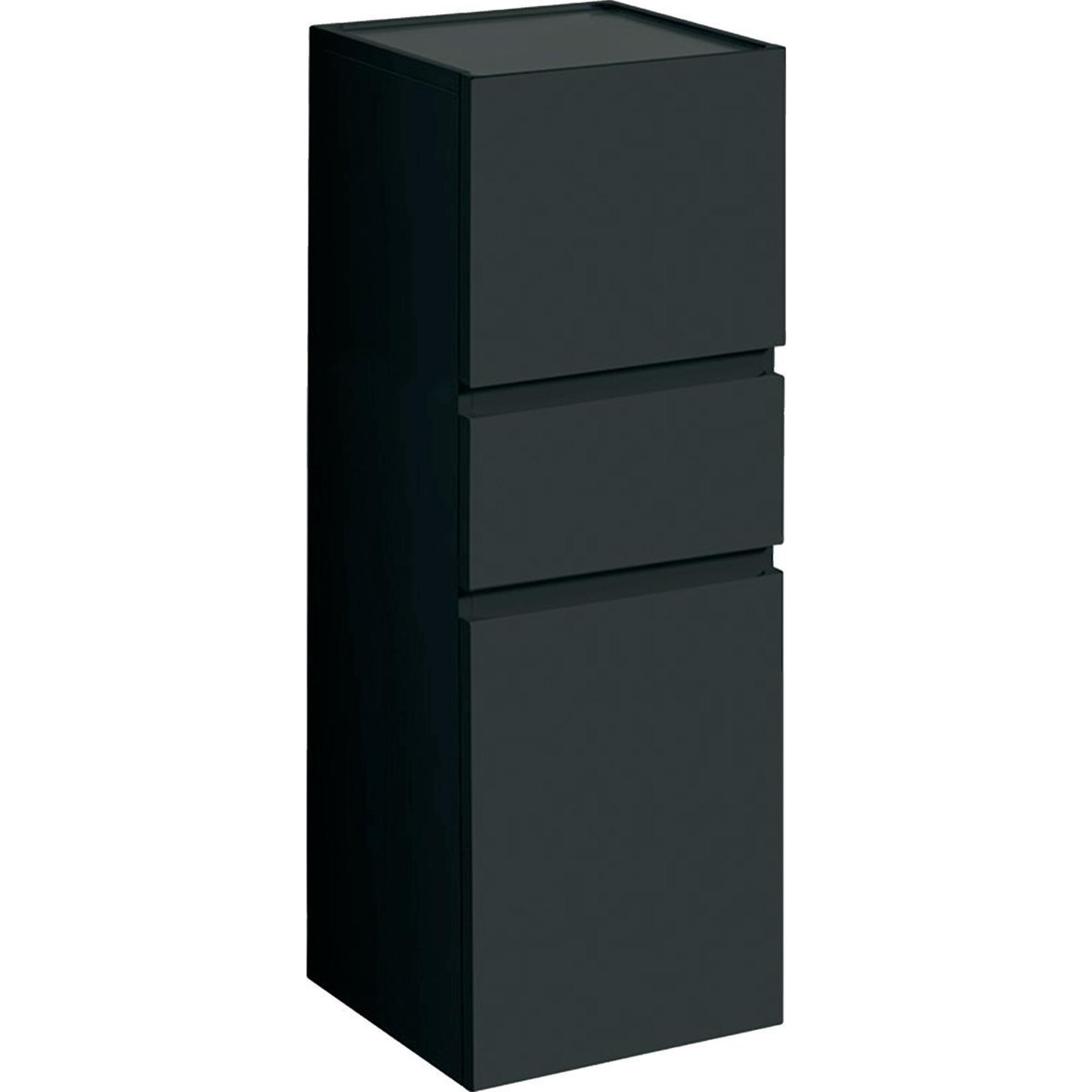 De **Geberit Renova Plan halfhoge kast** combineert functionele opbergruimte met een stijlvol, modern design. Met zijn strakke lijnen en mat lava-antraciet afwerking is deze kast een perfecte toevoeging aan eigentijdse badkamers.Ruimtebesparend en praktisch De kast heeft een hoogte van 105 cm, wat hem ideaal maakt voor kleinere ruimtes of als aanvulling op je badkamermeubelset. De twee deuren en een lade bieden voldoende opbergruimte voor handdoeken, toiletartikelen en andere benodigdheden. Het compacte ontwerp maakt de kast veelzijdig en geschikt voor diverse badkamerindelingen.