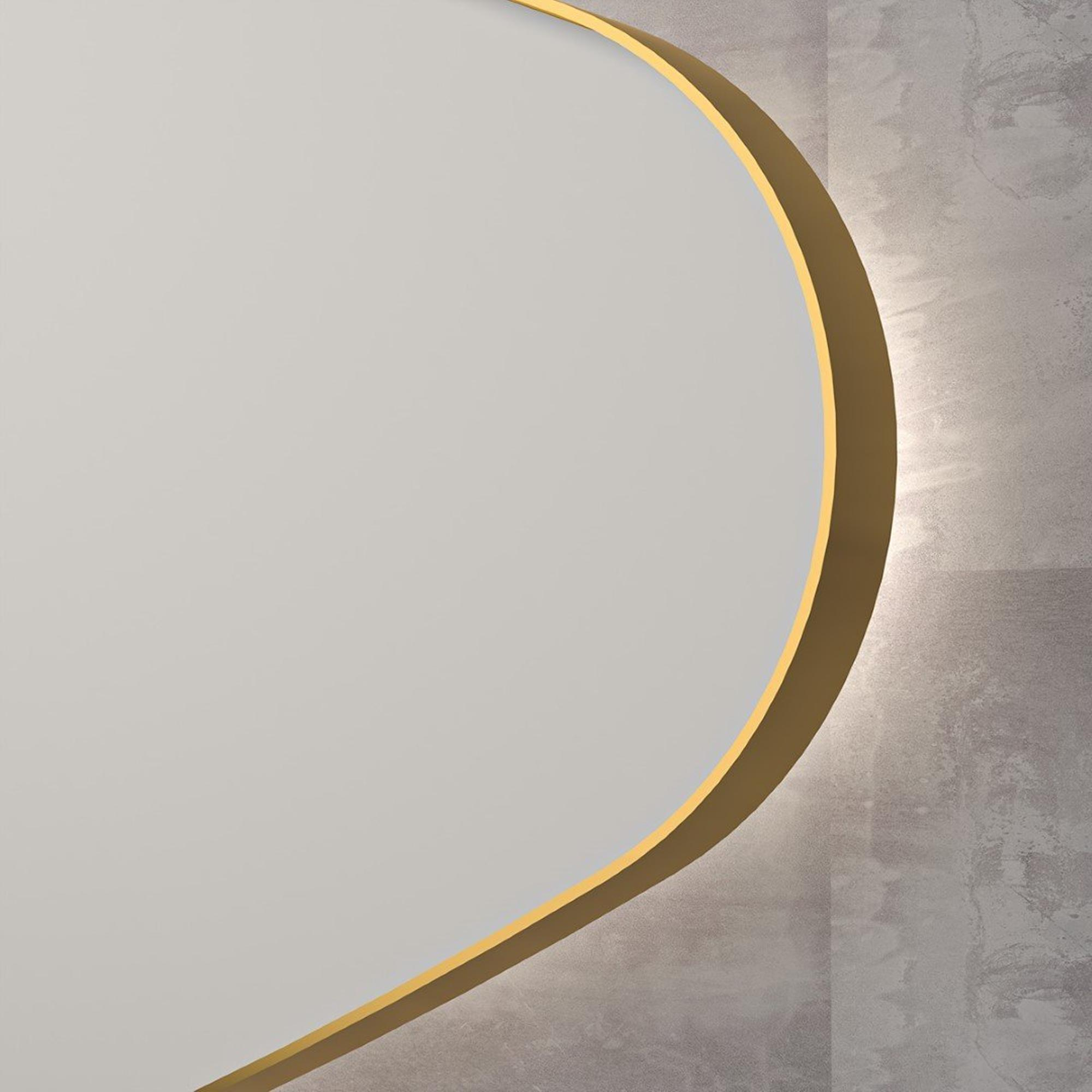 De INK SP23 spiegel straalt een ongeëvenaarde stijl uit met zijn moderne ontwerp en luxe uitstraling. Het organische vormgeving en de Mat gouden afwerking voegen een vleugje glamour toe aan elke ruimte waarin deze spiegel wordt geplaatst. De LED-verlichting onder en boven zorgt voor een sfeervolle ambiance en kan worden aangepast aan de gewenste kleur en helderheid, waardoor deze spiegel perfect is voor elke stemming.