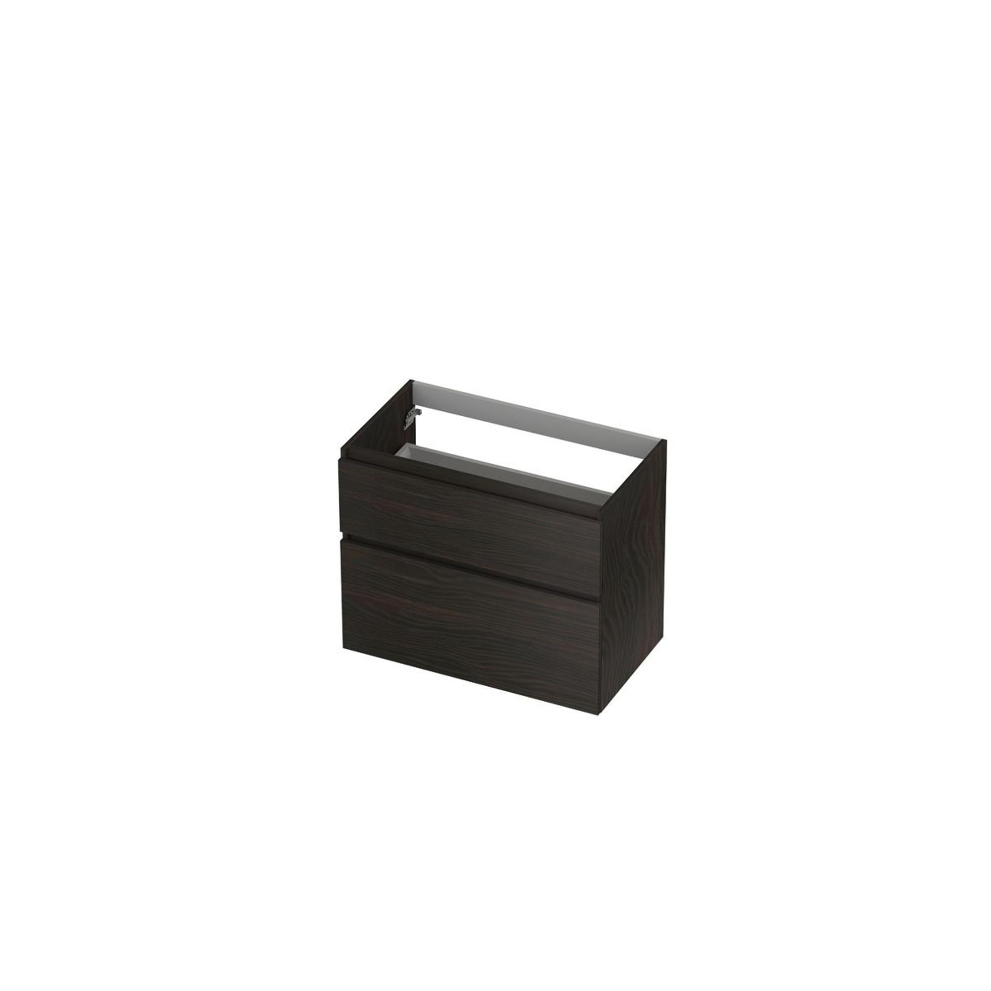 INK Wastafelonderkast - 80x45x65cm - 2 lades - greeploos - houten keerlijst - a symmetrisch - MFC Intens eiken