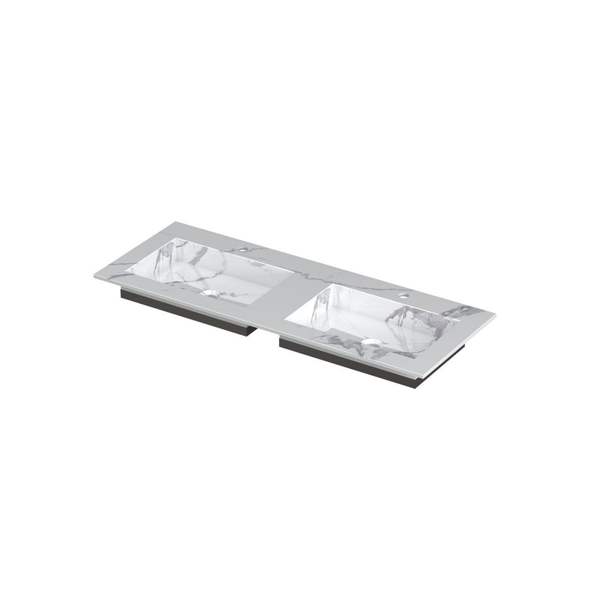 INK Post wastafel - 120x45x1cm - 2 wasbakken - 2 kraangaten - keramiek Statuario glans