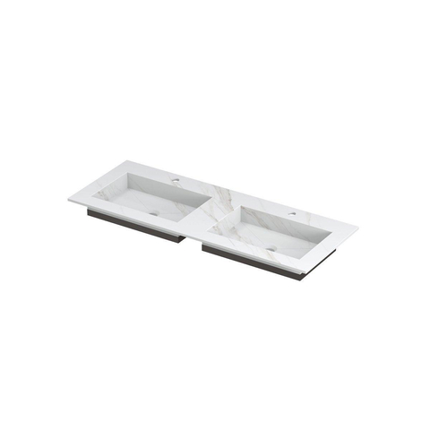 INK Post wastafel - 120x45x1cm - 2 wasbakken - 2 kraangaten - keramiek Calacatta mat