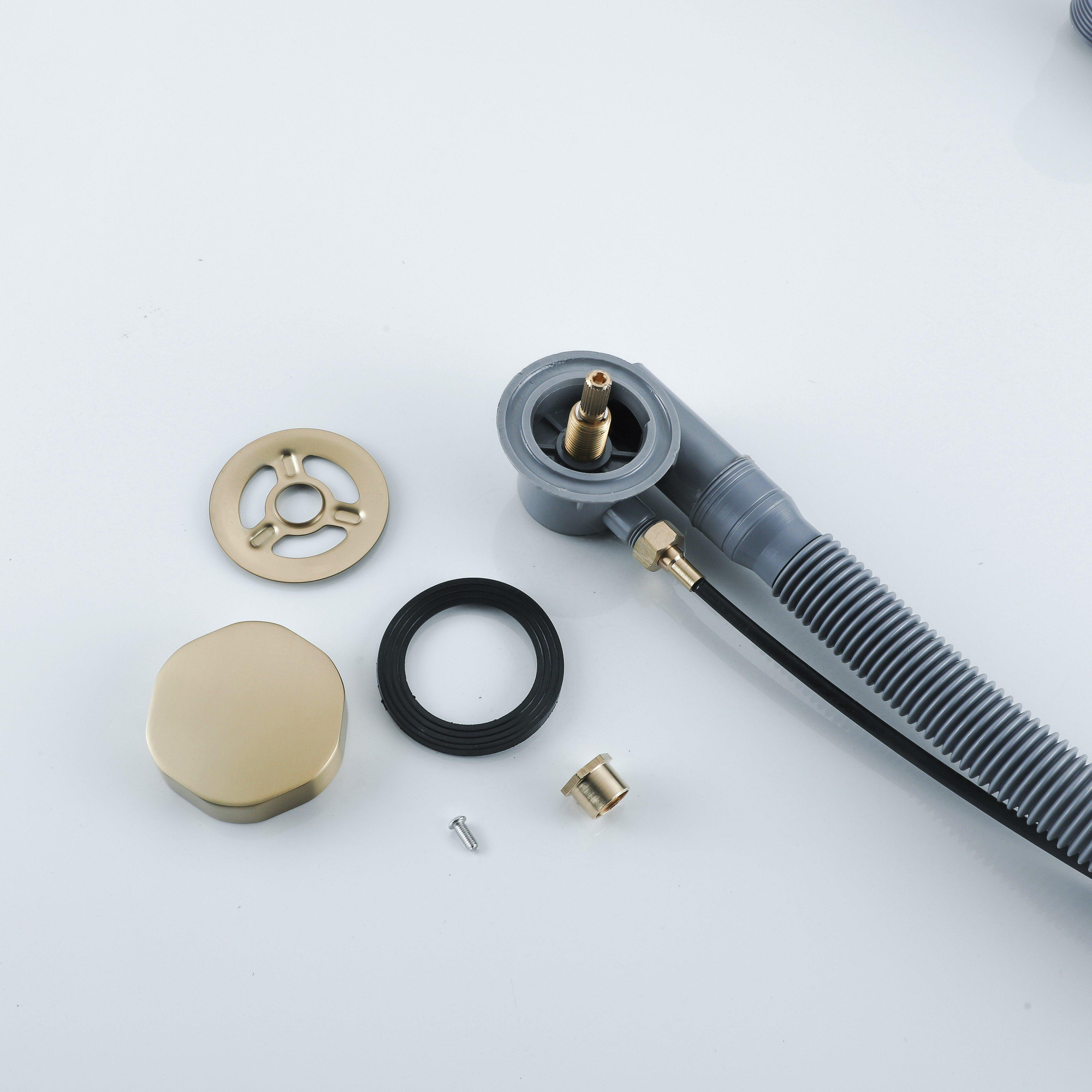 De Fortifura Calvi Badafvoercombinatie straalt luxe uit in elke badkamer. Het geborsteld messing PVD geeft een unieke en verfijnde uitstraling aan het product. De draaibediening zorgt voor een moeiteloze en precieze controle over de waterstroom, waardoor u kunt genieten van een ontspannende badervaring. Deze combinatie van materialen en functionaliteit maakt dit product een luxe toevoeging aan uw badkamer.