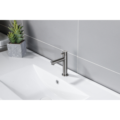 Met zijn hoogwaardige materialen en afwerking straalt de Fortifura Calvi Fonteinkraan een gevoel van luxe uit. Het gebruik van PVD geborsteld gunmetal zorgt niet alleen voor een elegante uitstraling, maar garandeert ook duurzaamheid en langdurige glans. Deze fonteinkraan voegt een vleugje luxe toe aan elke badkamer en creëert een spa-achtige sfeer.
