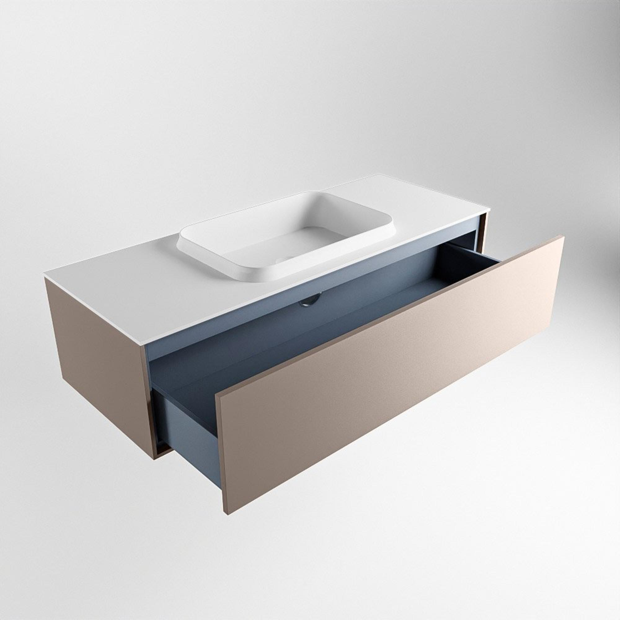 MONDIAZ ERIN Badkamermeubelset - 120cm - Smoke - 1 lade - wasbak midden - 0 kraangaten - Talc