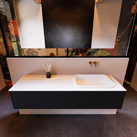 MONDIAZ ERIN Badkamermeubelset - 150cm - Urban - 1 lade - wasbak rechts - 0 kraangaten - Talc