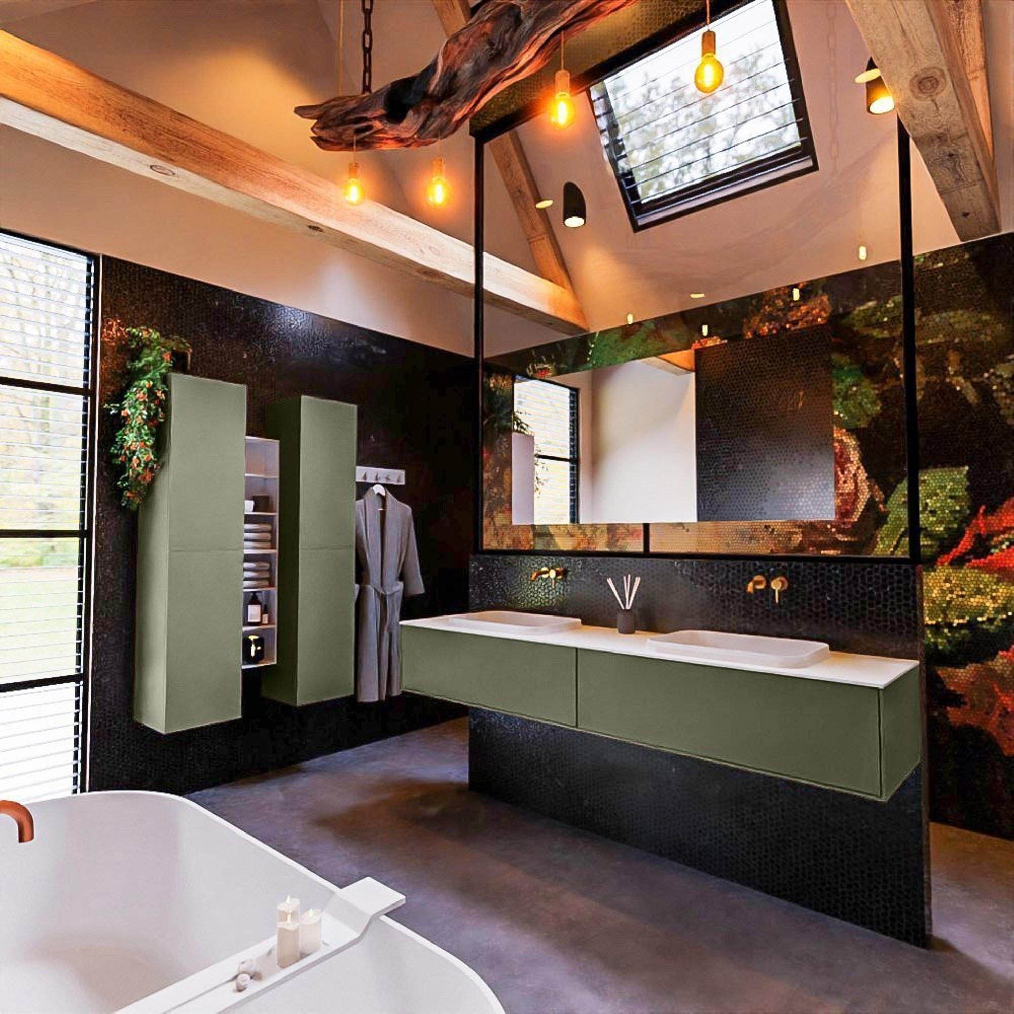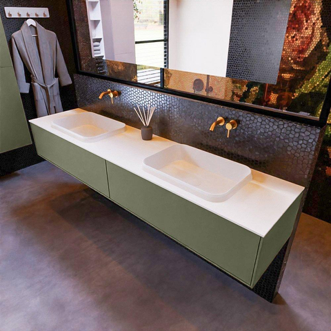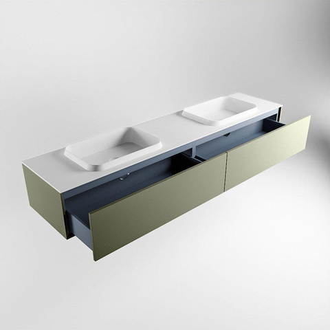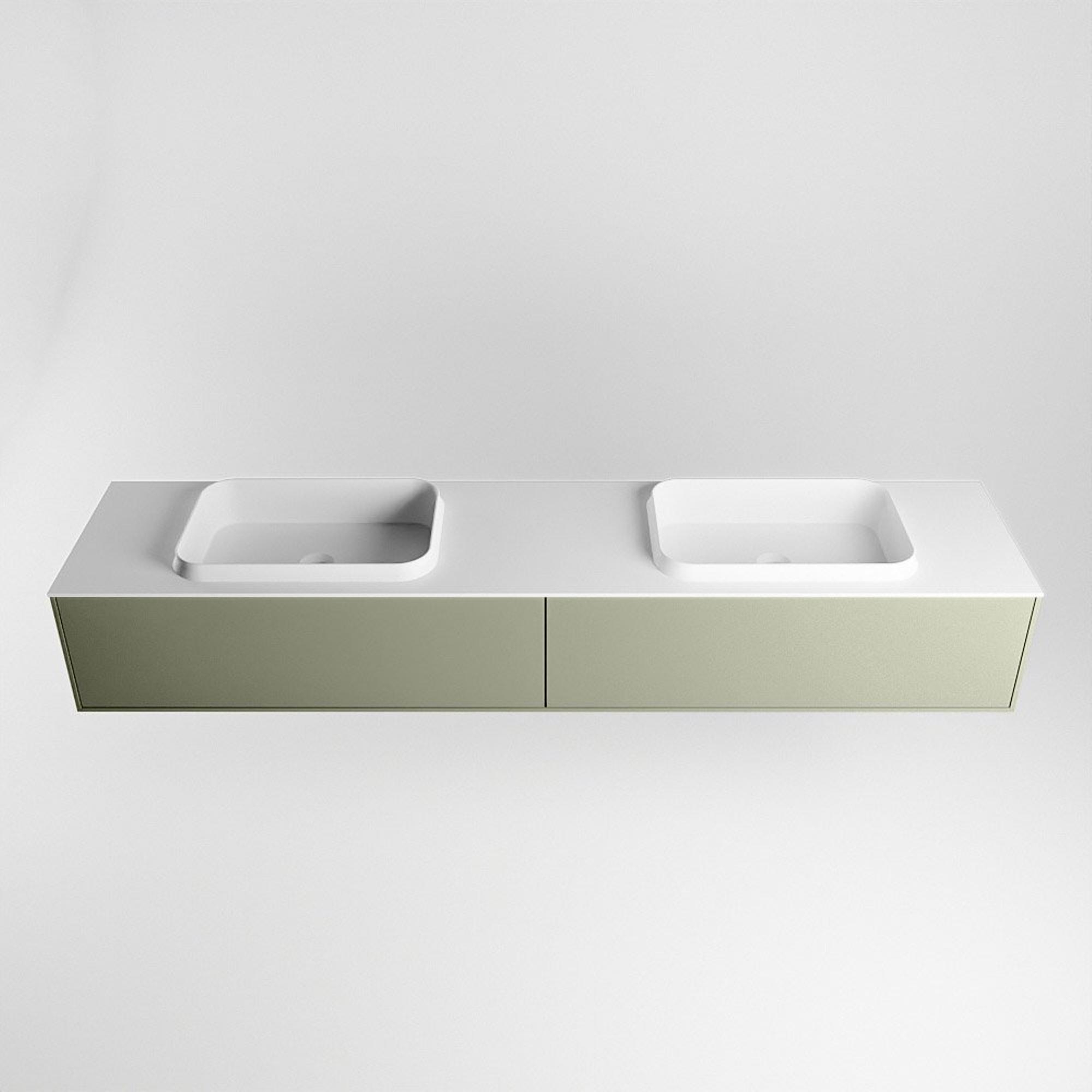 MONDIAZ ERIN Badkamermeubelset - 200cm - Army - 2 lades - 2 wasbakken - 0 kraangaten - Talc