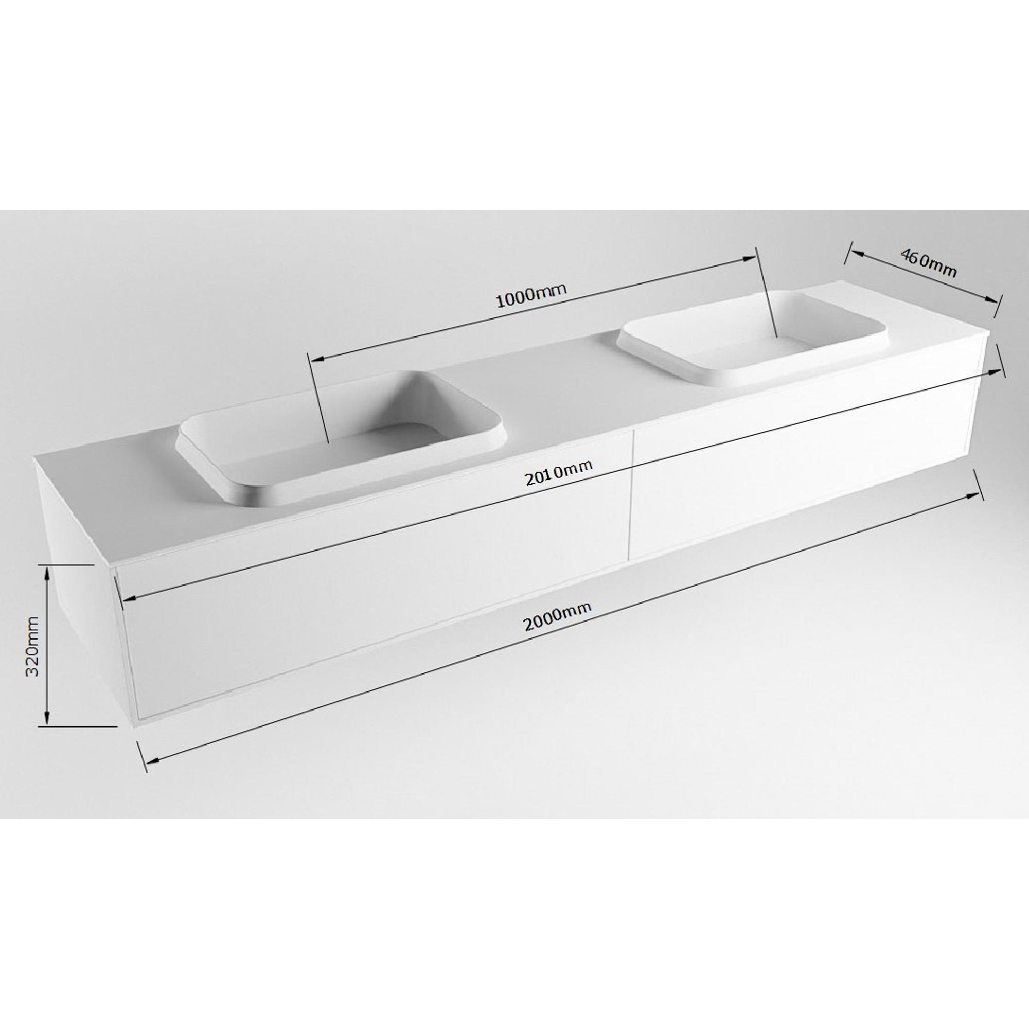 Met zijn ruime afmetingen van 200cm en de aanwezigheid van 2 lades en 2 wasbakken, is dit badkamermeubelset niet alleen stijlvol, maar ook uiterst functioneel. De Talc afwerking geeft het geheel een tijdloze uitstraling en zorgt ervoor dat het meubelstuk naadloos past bij diverse interieurstijlen. Een praktische en duurzame keuze voor elke badkamer.