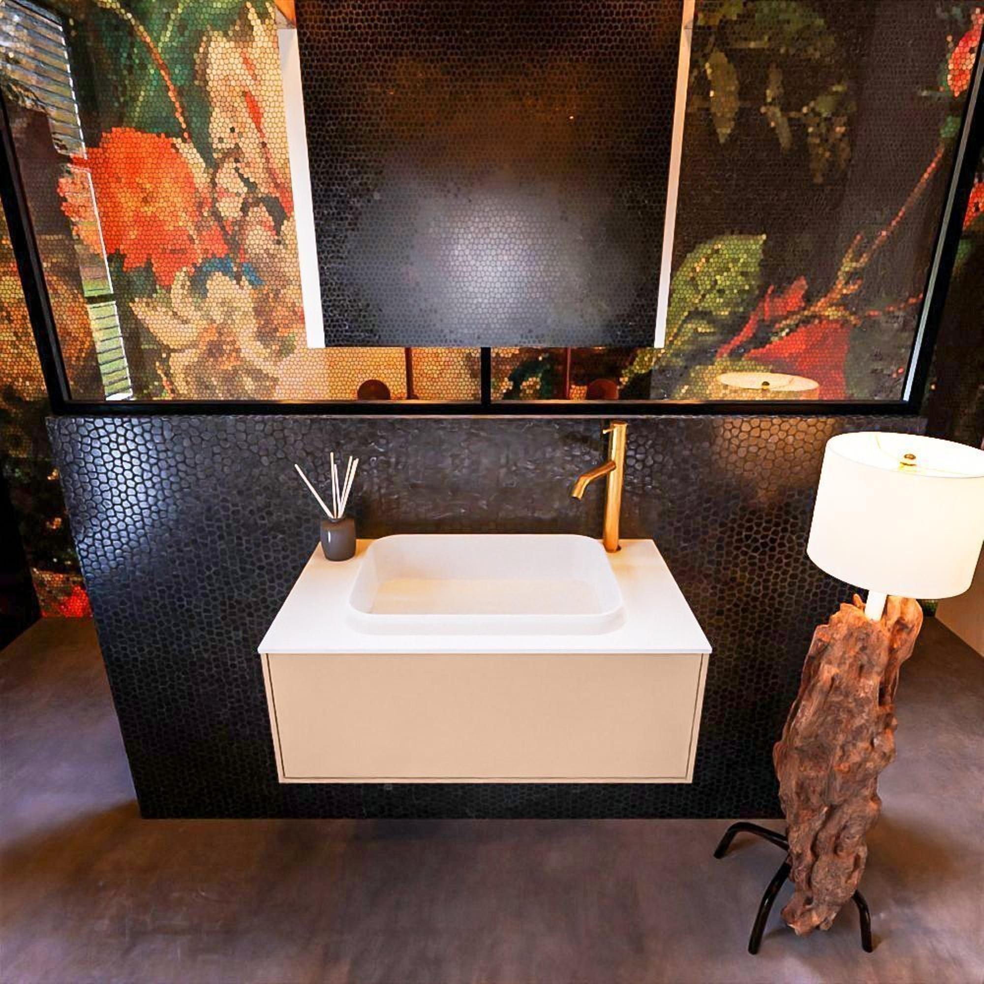 MONDIAZ ERIN Badkamermeubelset - 80cm - Rosee - 1 lade - wasbak midden - 1 kraangat - Talc
