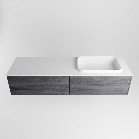 MONDIAZ ERIN Badkamermeubelset - 150cm - Antracite - 2 lades - wasbak rechts - 1 kraangat - Talc