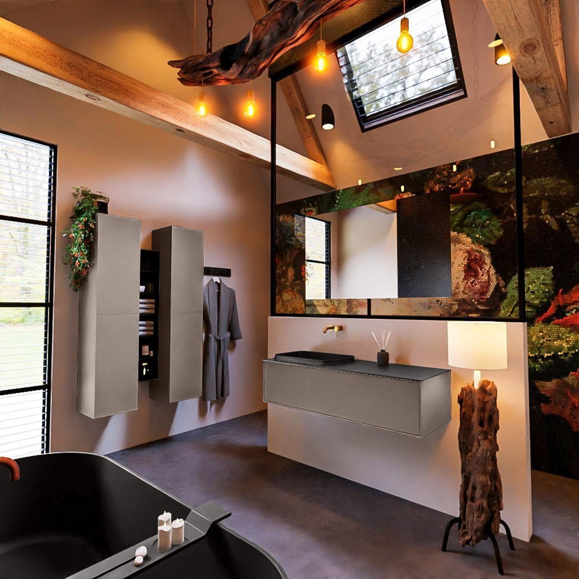 MONDIAZ ERIN Badkamermeubelset - 120cm - Smoke - 1 lade - wasbak links - 0 kraangaten - Urban