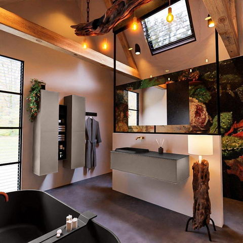 De MONDIAZ ERIN badkamermeubelset straalt stijl en elegantie uit. De rookkleurige afwerking geeft een luxe uitstraling aan de badkamer. Het strakke ontwerp en de subtiele details maken dit meubelstuk een tijdloze toevoeging aan elke badkamer. De combinatie van functionaliteit en design maakt dit badkamermeubelset een must-have voor liefhebbers van moderne interieurs.