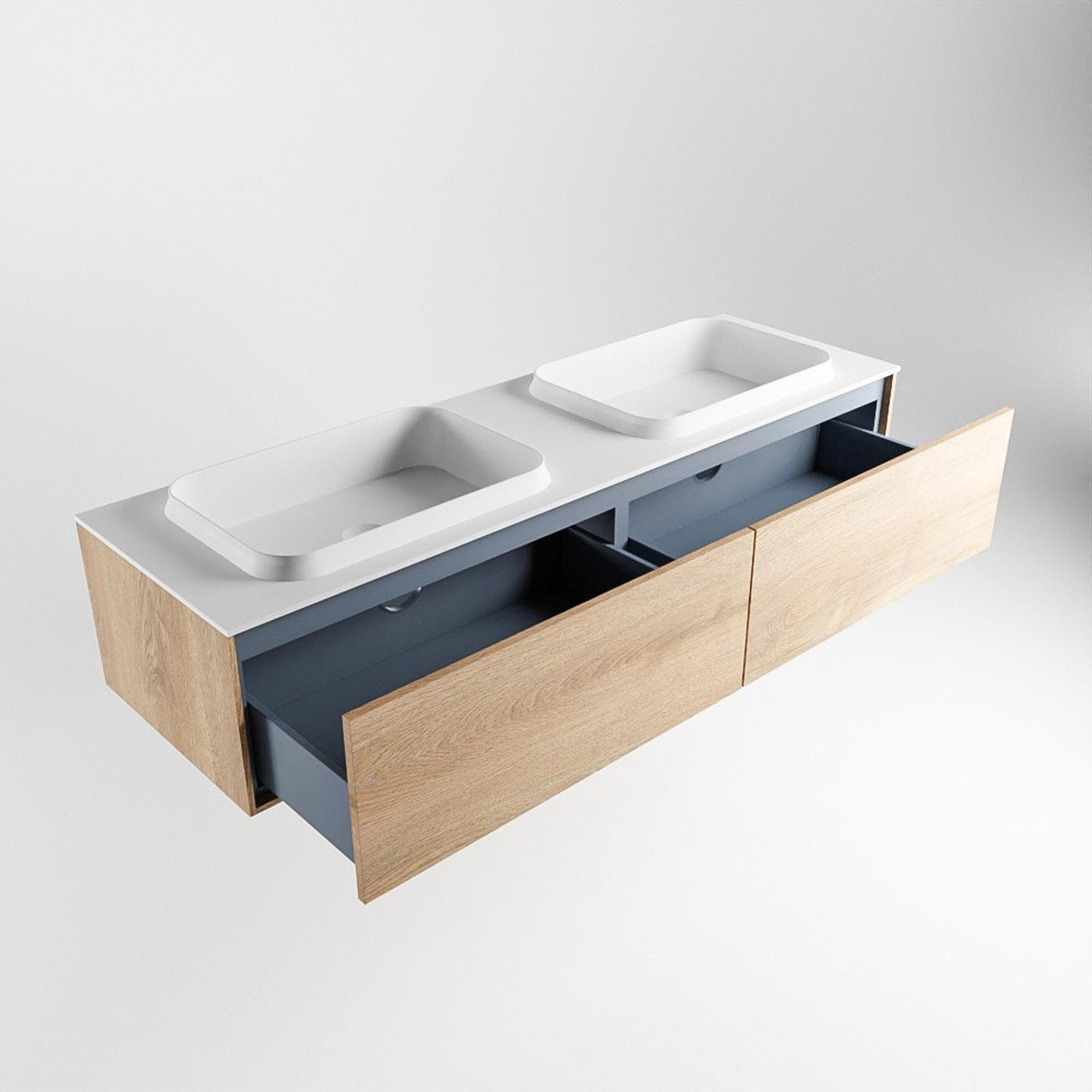MONDIAZ ERIN Badkamermeubelset - 150cm - Washed oak - 2 lades - 2 wasbakken - 2 kraangaten - Talc