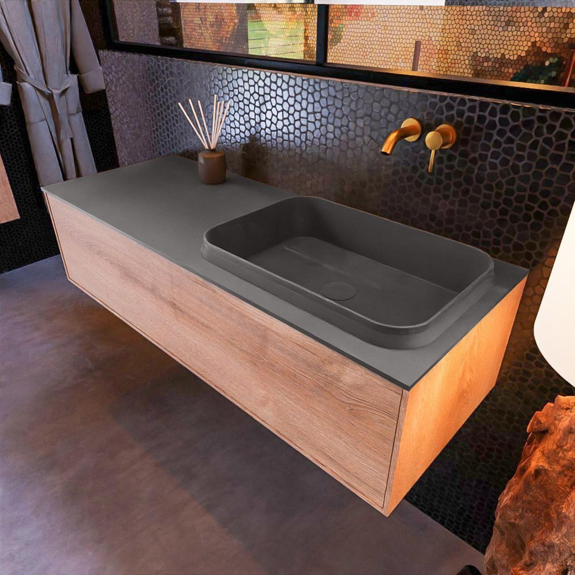 MONDIAZ ERIN Badkamermeubelset - 120cm - Washed oak - 1 lade - wasbak rechts - 0 kraangaten - Dark grey