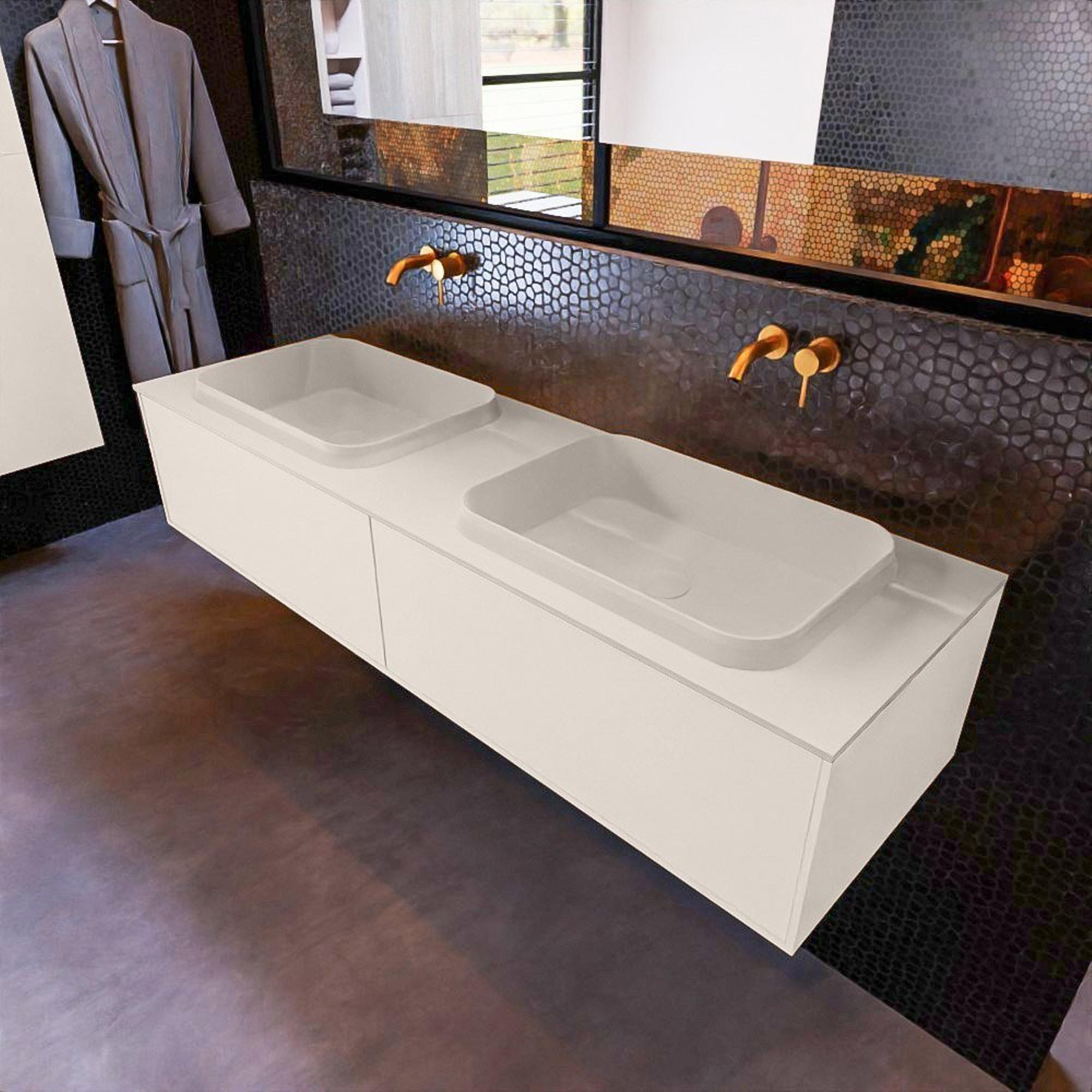 MONDIAZ ERIN Badkamermeubelset - 150cm - Linen - 2 lades - 2 wasbakken - 0 kraangaten - Linen