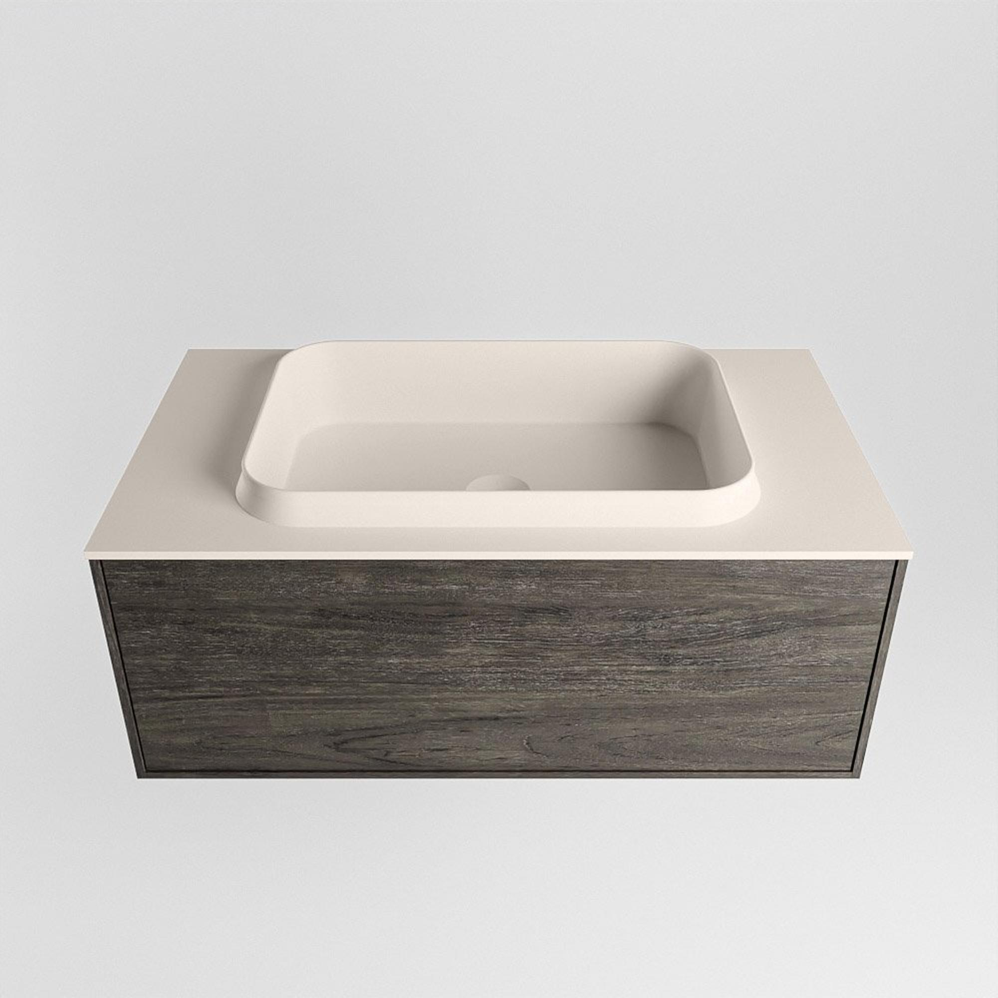 MONDIAZ ERIN Badkamermeubelset - 80cm - Dark brown - 1 lade - wasbak midden - 0 kraangaten - Linen