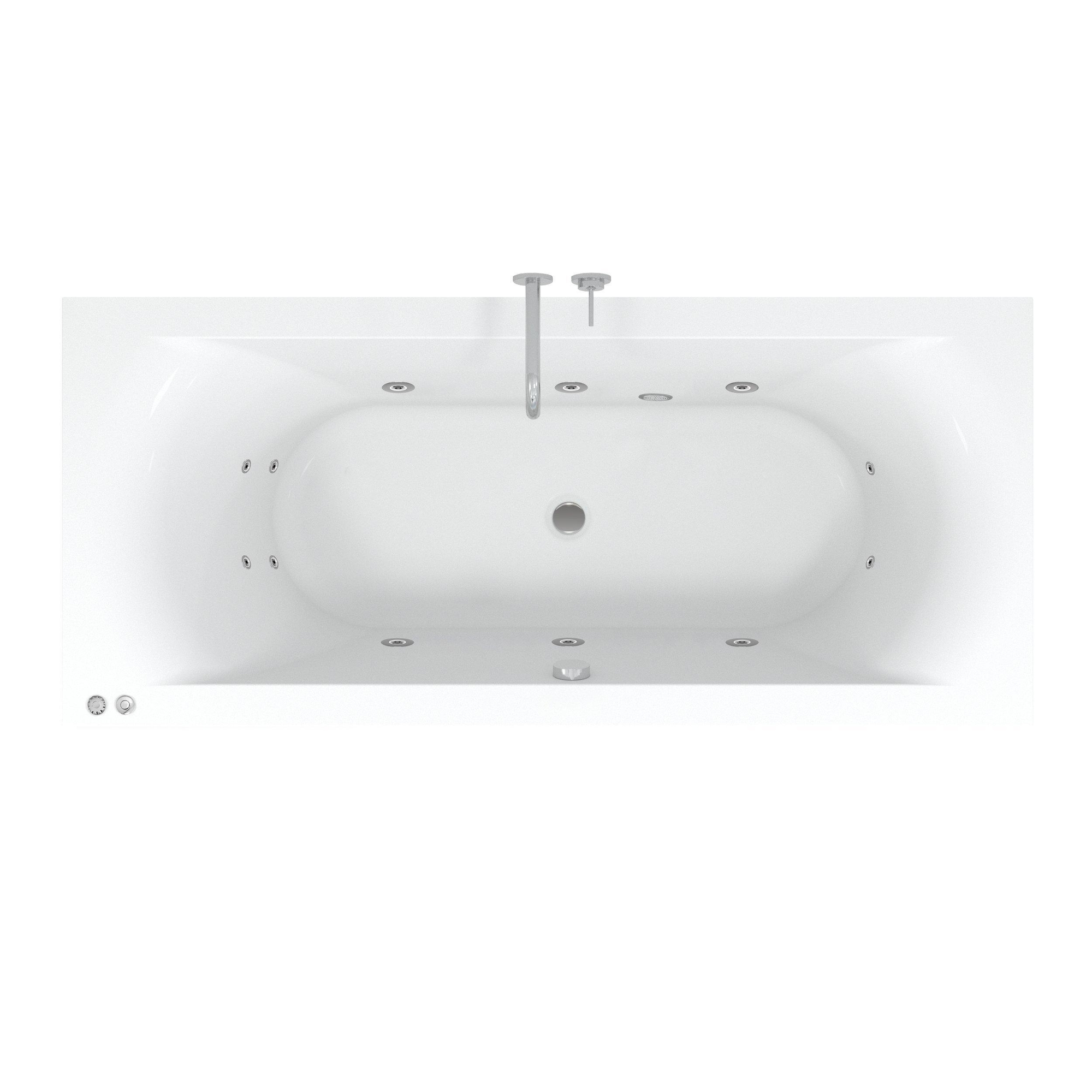 Riho Easypool 3.1 Lima whirlpoolbad rechts 180x80cm hydro 6+4+2 pneumatische bediening inclusief poten en afvoer wit