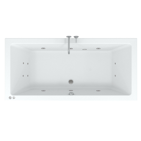 De jets worden aangedreven door een 800 Watt motor. Met de luchtregelknop kun je zelf de intensiteit van de jets instellen. Door het aanzuigrooster wordt de lucht via de pomp in de jets geduwd, hierdoor kan de intensiteit van de jets worden veranderd. De jets zijn uitgevoerd in het wit chroom. Het bad heeft een pneumatische bediening. In één van de hoeken zitten twee knoppen, met de ene kun je de jets aanzetten en met de andere kun je de intensiteit van de jets aanpassen. Het bad wordt geleverd inclusief afvoer en pop-up.