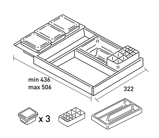 INK lade - indeling model L - zwarte antislip mat - Antraciet