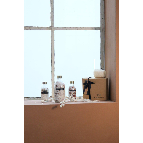 Ervaar de ultieme luxe met de Wellmark Giftbox Badzout. Het heldere glas geeft een gevoel van verfijning en elegantie, terwijl de messing dop een vleugje glamour toevoegt aan je badritueel. De zorgvuldig samengestelde badzouten zorgen voor een ontspannende en revitaliserende ervaring, waardoor je lichaam en geest volledig tot rust komen. Geniet van een spa-achtige behandeling in je eigen huis met deze luxueuze giftbox.