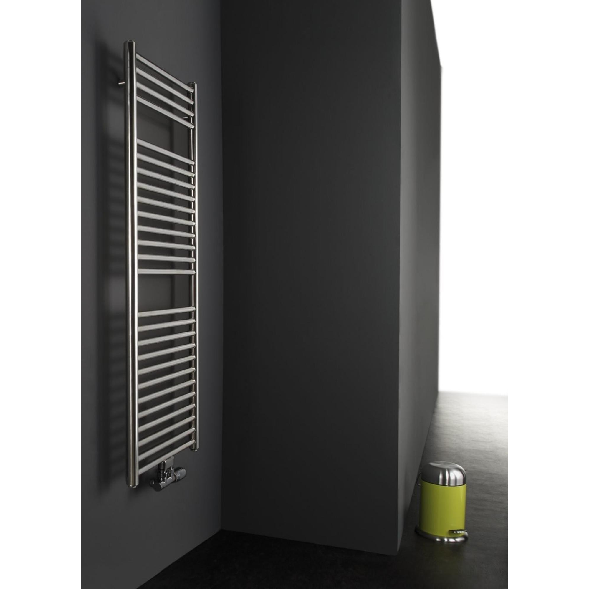 ?Instamat Inox Straight Badkamerradiator Elektrisch H 1565 x L 605Mm Incl. Wandconsoles Geborsteld RvsDe INOX heeft een strakke en tijdloze vormgeving en is daardoor functioneel voor elke badkamer. De radiator wordt van hoogwaardig RVS gemaakt en met de grootste zorg gefabriceerd. Zo ontstaat een zo egaal mogelijk oppervlak. Leverbaar in een rechte (INOX Straight) en een licht gebogen (INOX Bow) uitvoering. De radiator is opgebouwd uit twee ronde verticale collectorbuizen met daartussen horizontale buizen. Beide uitvoeringen zijn verkrijgbaar zowel in geborsteld RVS als in gepolijst RVS. Indien de 50mm onder-aansluiting niet wordt gebruikt dan geeft het onderste element minder warmte af dan de overige elementen. Deze radiator wordt standaard geleverd met de witte thermostaat EL.BEDIENING.08.