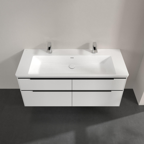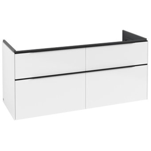 Villeroy & Boch Subway 3.0 wastafelonderkast 130x55x45cm met Volcano Black greep 1 sifonuitsparing spaanplaat Brilliant White SW701044